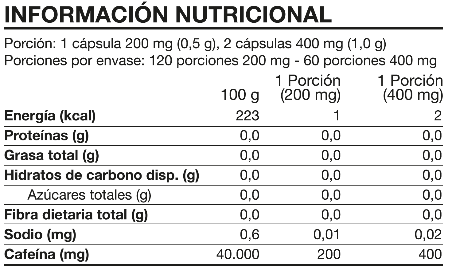 Cafeína en cápsulas Caffeine Xtreme 400 mg 120 caps – Foodtech