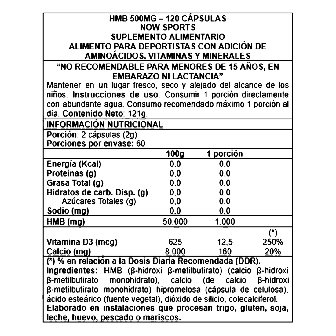 HMB 500 mg 120 cápsulas Now Foods info nutricional