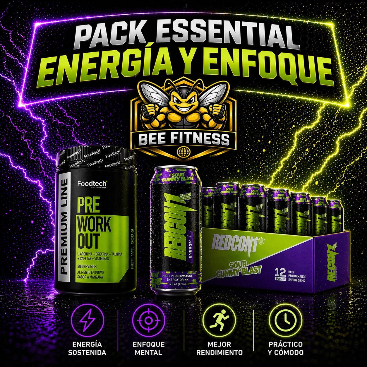 Este pack está orientado al objetivo energía y enfoque desde una lógica práctica y comercial. No se trata de promesas exageradas, sino de ofrecer una combinación que ayude a ordenar mejor la rutina previa al entrenamiento con formatos que resultan cómodos de usar.