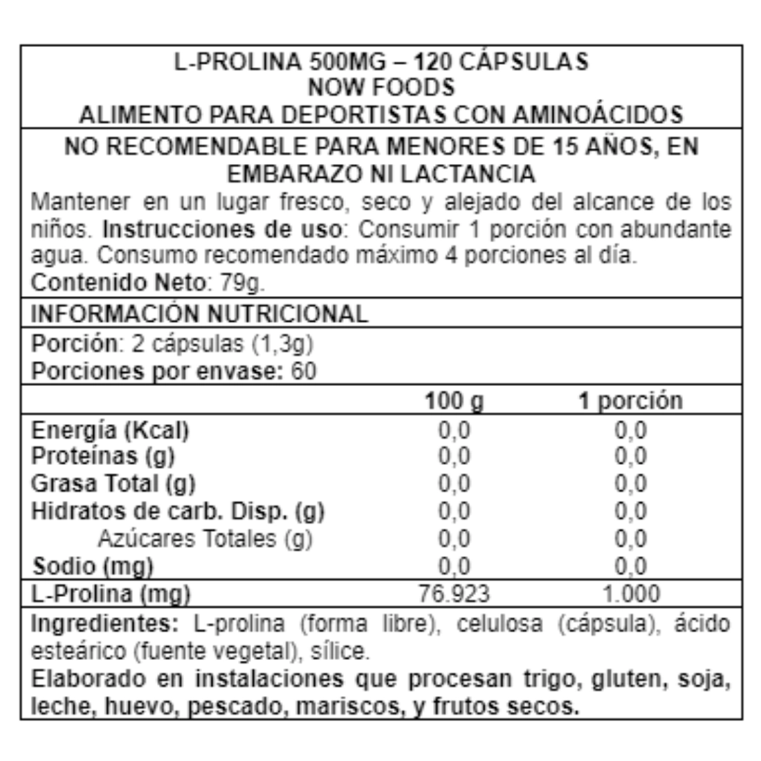 Prolina suplemento 500 mg 120 cápsulas – NOW Foods